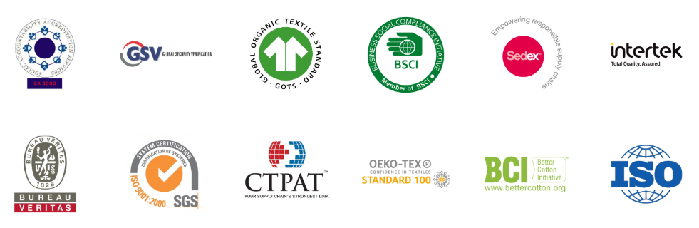 Our global network of manufacturers is carefully vetted to ensure the highest standards in quality, transparency, and ethical practices. Many of the factories in our network carry industry-leading certifications, including: